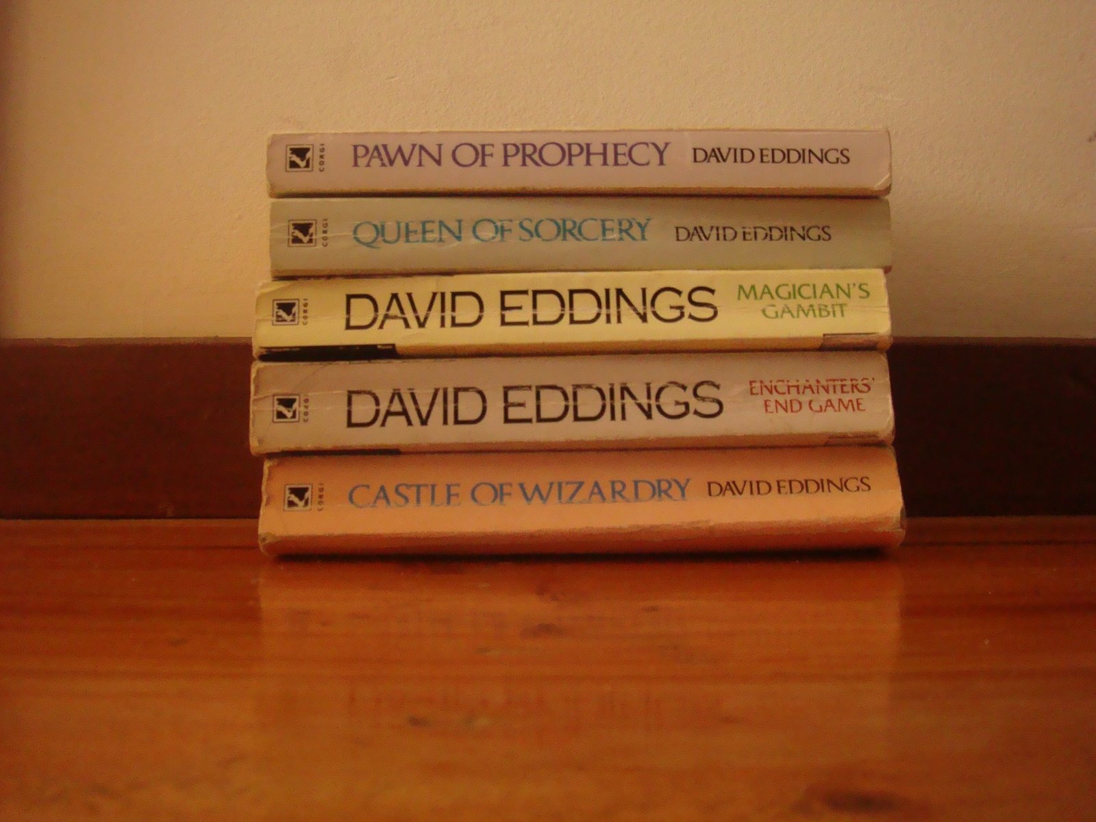 This series was recommended to me as an exemplar of the quickie quest-fantasy genre. David Eddings’ author profile states that the five books making up the Belgariad series were writen ‘in an effort to develop certain technical and philosophical ideas concerning’ the fantasy genre. The technical motive is obvious here; these books are pretty close to a scientific foray into fantasy as I (an enthusiastic but not very well-versed consumer of fantasy books) have ever seen. Well-paced, internally consistent, mostly powerfully characterised, it’s as digestible as strawberries with cream; move along if you’re after Tolkien-esque three-page tree songs.